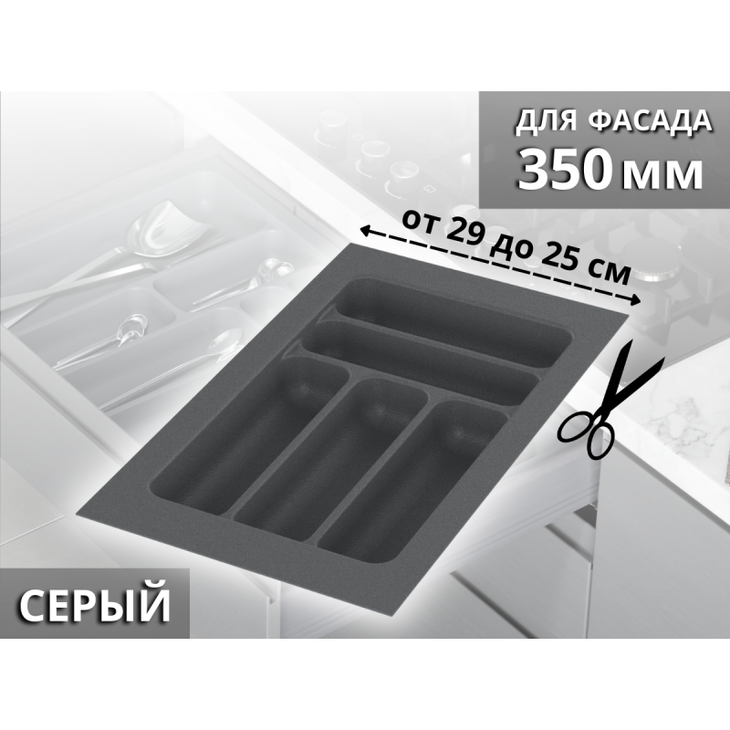 S-2282-GP Лоток для столовых приборов Starax в базу шир. 350 (290x490x55) серый <1/15>