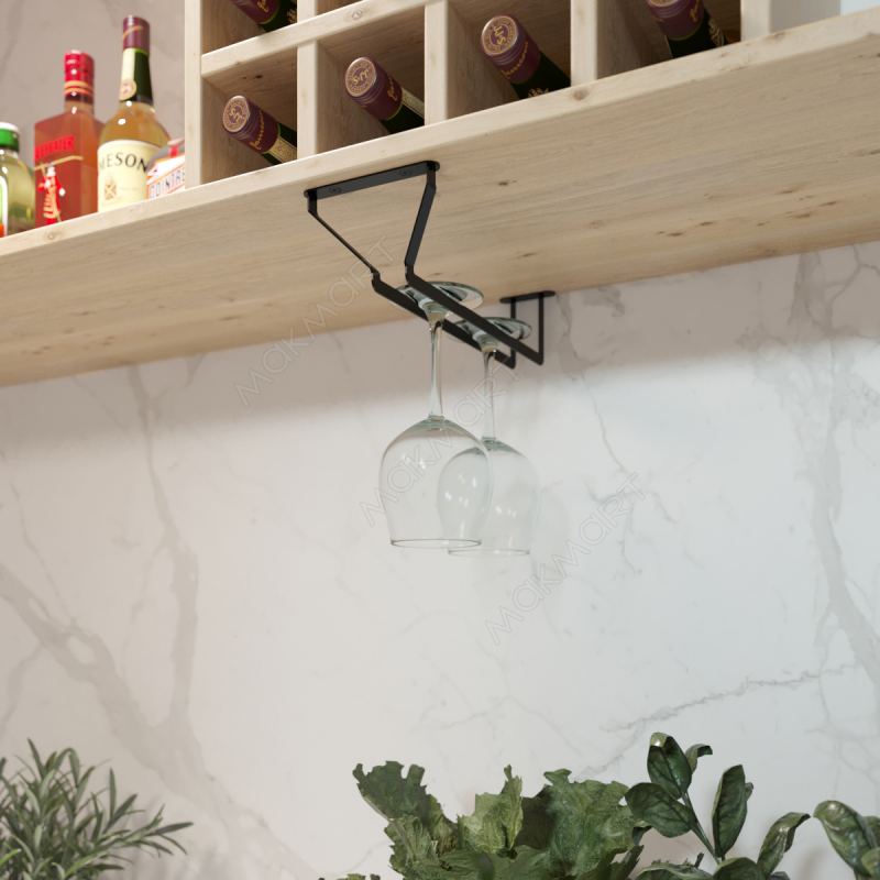 Держатель для бокалов однорядный, отделка черный бархат (матовый)
