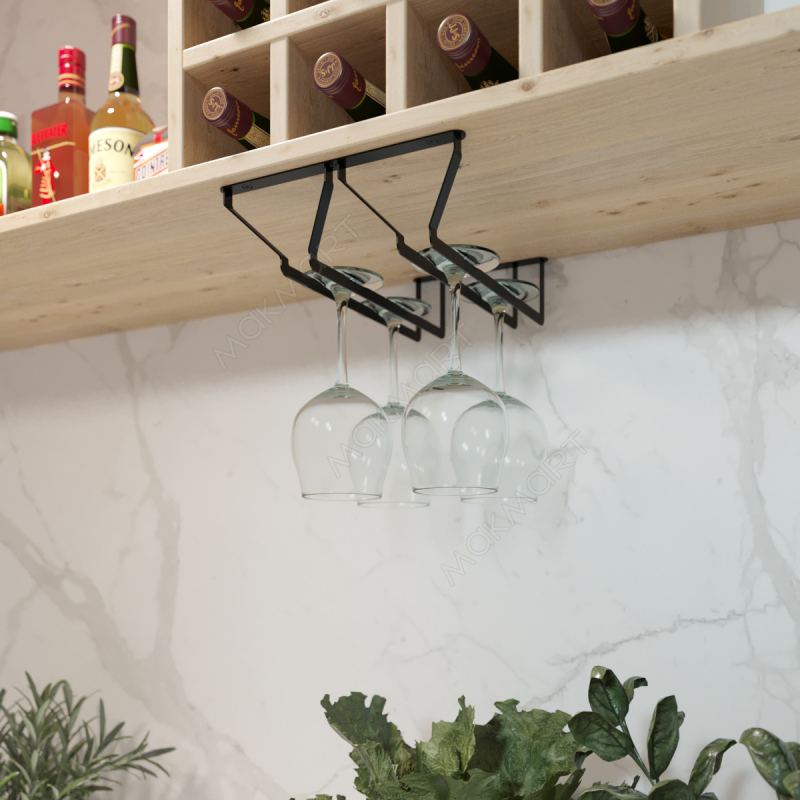 Держатель для бокалов двухрядный, отделка черный бархат (матовый)