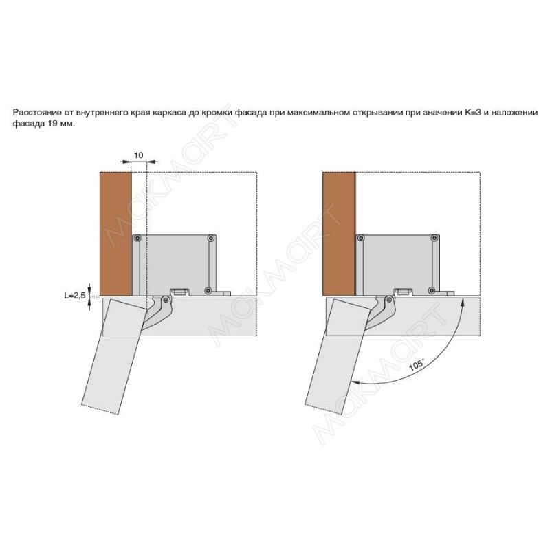- два варианта исполнения: Soft-close (с интегрированным доводчиком) и Push (открывание производится нажатием, что идеально подходит для фасадов без ручек).