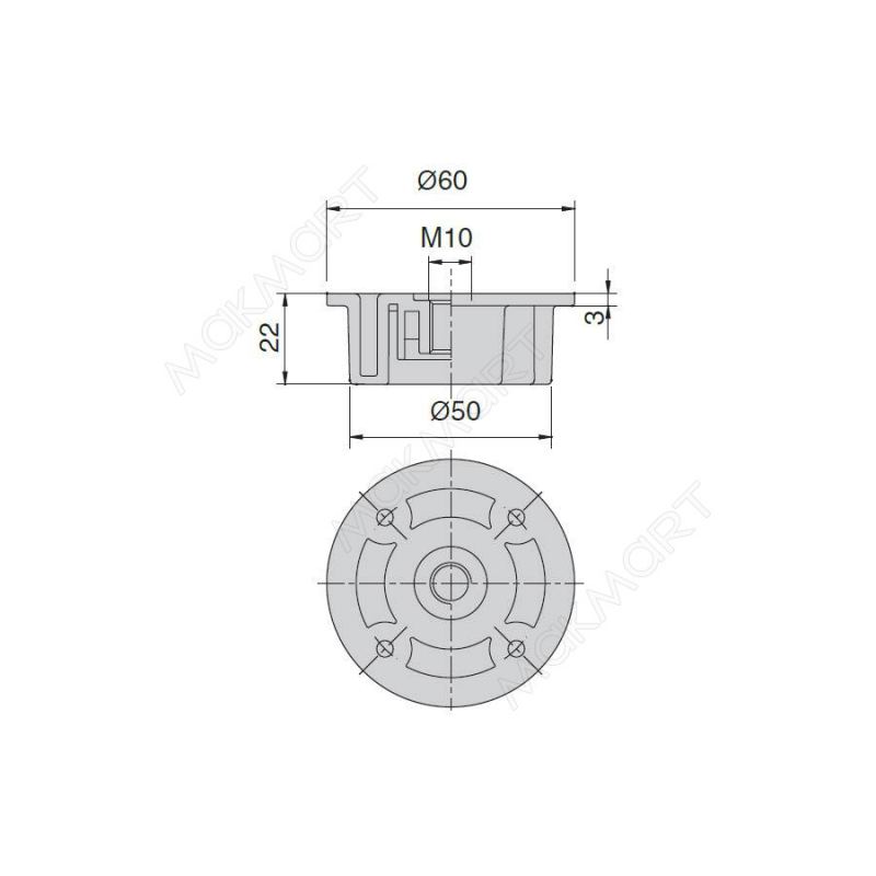 База под шуруп и винт М10, для ножки разборной, черная