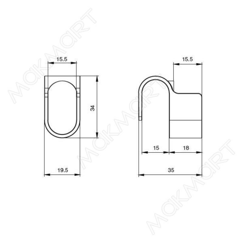 | РАЗМЕР | Ширина (B, мм)19.5Глубина (H, мм)35Высота (H, мм)34 |