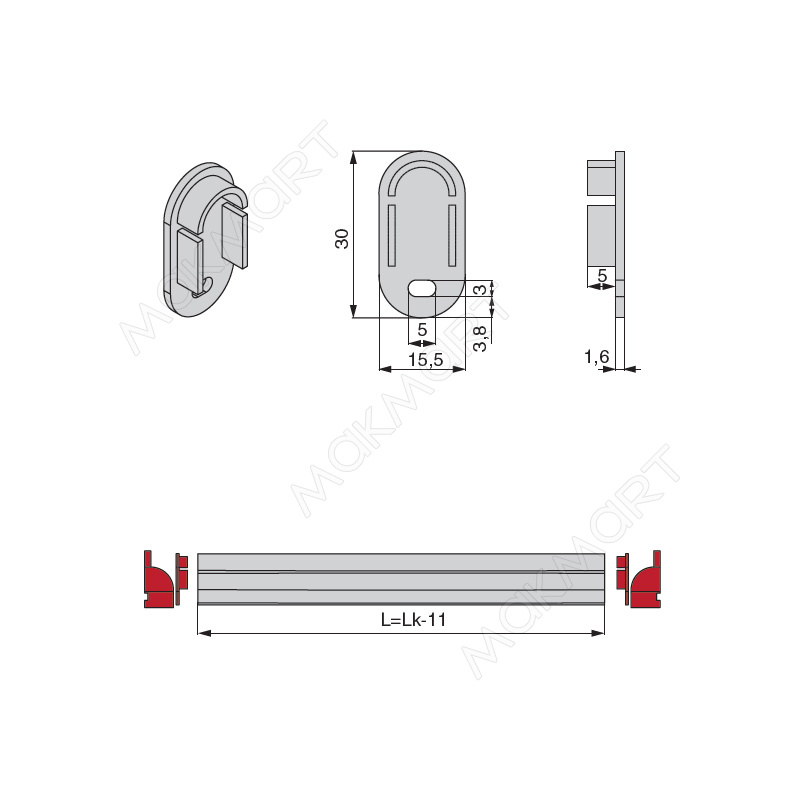 Заглушка с отверстием для профиль-штанги 1530, цвет черный