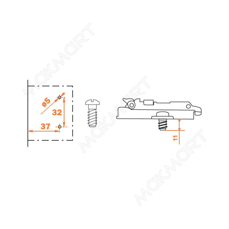 Клип-ответная планка Н4 с евровинтом, крестообразная CAM